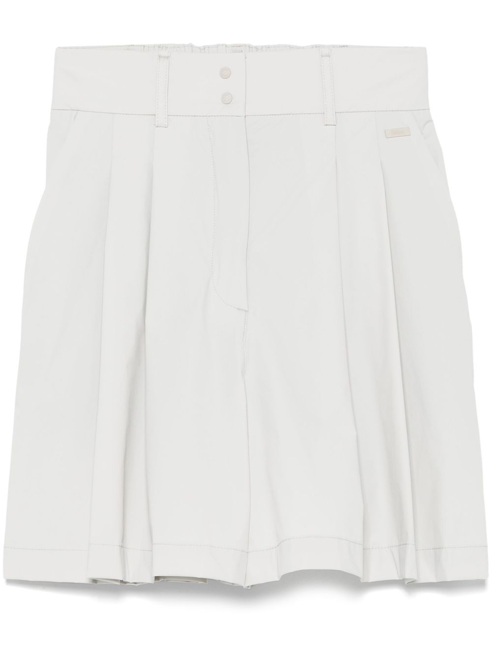 tailored shorts Highlights - Light grey - Front press-stud and zip fastening - Rear elasticated waistband - Belt loops - Side inset pocket Made in Italy Composition Polyester 100%, Polyamide 78%, Elastane 22% SIZE & FIT Model measurements Height 5 ft 10 in(1.78 m) Bust/Chest 33.46 in(85 cm) Hips 36.22 in(92 cm) Waist 23.22 in(59 cm) FittingInformation Designed for a loose fit, offering comfort and movement when worn The partially elasticated waistband offers increased movement and comfort at the waist Made from a lightweight stretch fabric, this piece offers elasticity and flexibility when worn
