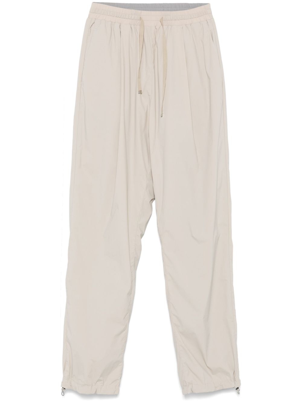 tapered trousers Highlights - Beige - Elasticated drawstring waistband - Two side slit pockets - Rear zip-fastening pocket - Drawstring hem Made in Italy Composition Outer: Polyamide 86%, Elastane 14% Lining: Polyamide 86%, Elastane 14% SIZE & FIT Model measurements Height 5 ft 11 in(1.8 m) Bust/Chest 31.49 in(80 cm) Hips 36.61 in(93 cm) Waist 24.4 in(62 cm) FittingInformation Designed for a relaxed tapered cut, these trousers allow for a close fit at the waist and offer a loose fit at the thighs, with a closer fit toward the ankles Adjust this piece’s waistband to your preference using the drawstring Made from a lightweight stretch fabric, this piece offers elasticity and flexibility when worn