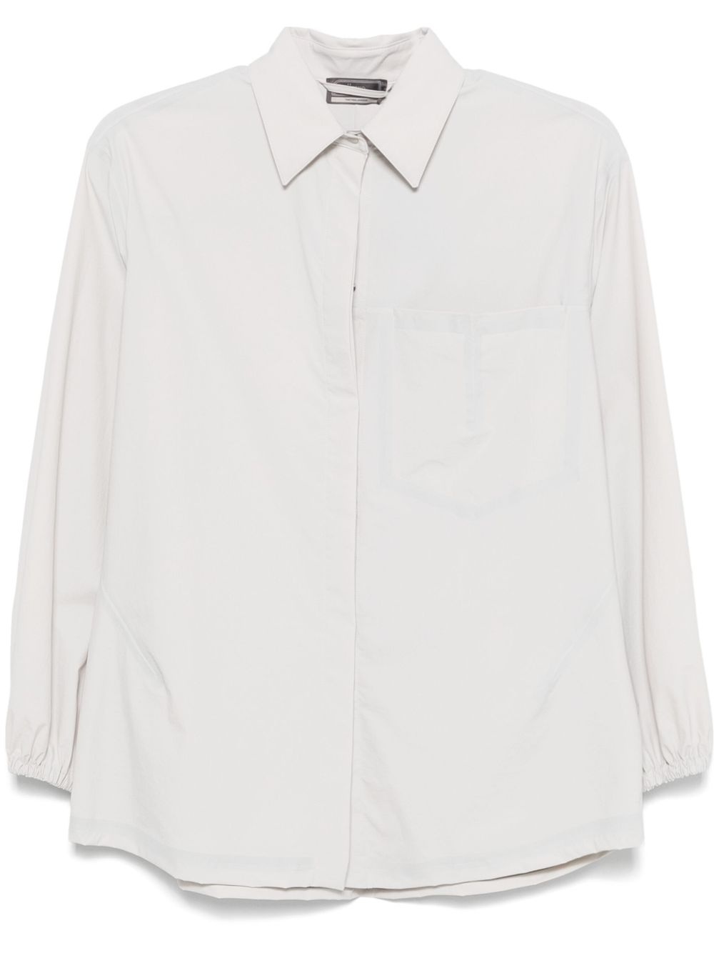 textured shirt Highlights - Light grey - Concealed front button fastening - Chest patch pocket - Elasticated cuffs - Pleat detailing Imported Composition Polyamide 81%, Elastane 13%, Polyester 6% SIZE & FIT Model measurements Height 5 ft 10 in(1.78 m) Bust/Chest 33.85 in(86 cm) Hips 36.61 in(93 cm) Waist 26.77 in(68 cm) FittingInformation Designed to be unstructured, offering a loose fit throughout Made from a lightweight stretch fabric, this piece offers elasticity and flexibility when worn