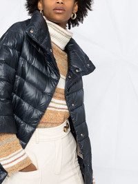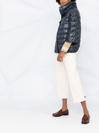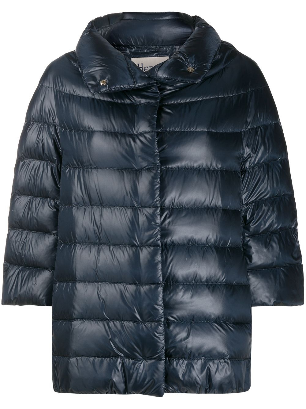 three-quarter sleeves jacket Layering is one of your top skills. Show it off in this padded jacket from Herno, which is designed with three-quarter length sleeves. No one does it quite like you. Highlights - Dark blue - Quilted - Stand-up collar - Three-quarter length sleeves - Front press-stud fastening Imported Composition Lining: Goose Down 100%, Polyamide 100% Outer: Polyamide 100%, Cotton 60%, Acetate 40% SIZE & FIT Model measurements Height 5 ft 11 in(1.8 m) Bust/Chest 31.49 in(80 cm) Hips 35.82 in(91 cm) Waist 24.8 in(63 cm) Measurement BUST 40.15 in(102 cm) LENGTH 23.62 in(60 cm) WAIST 40.94 in(104 cm) SLEEVE LENGTH 16.14 in(41 cm) Shoulder Width 22.83 in(58 cm) FittingInformation This piece fits true to size. We recommend you get your regular size Cut for a loose fit Made with a lightweight non-stretch fabric Washing instructions Hand Wash