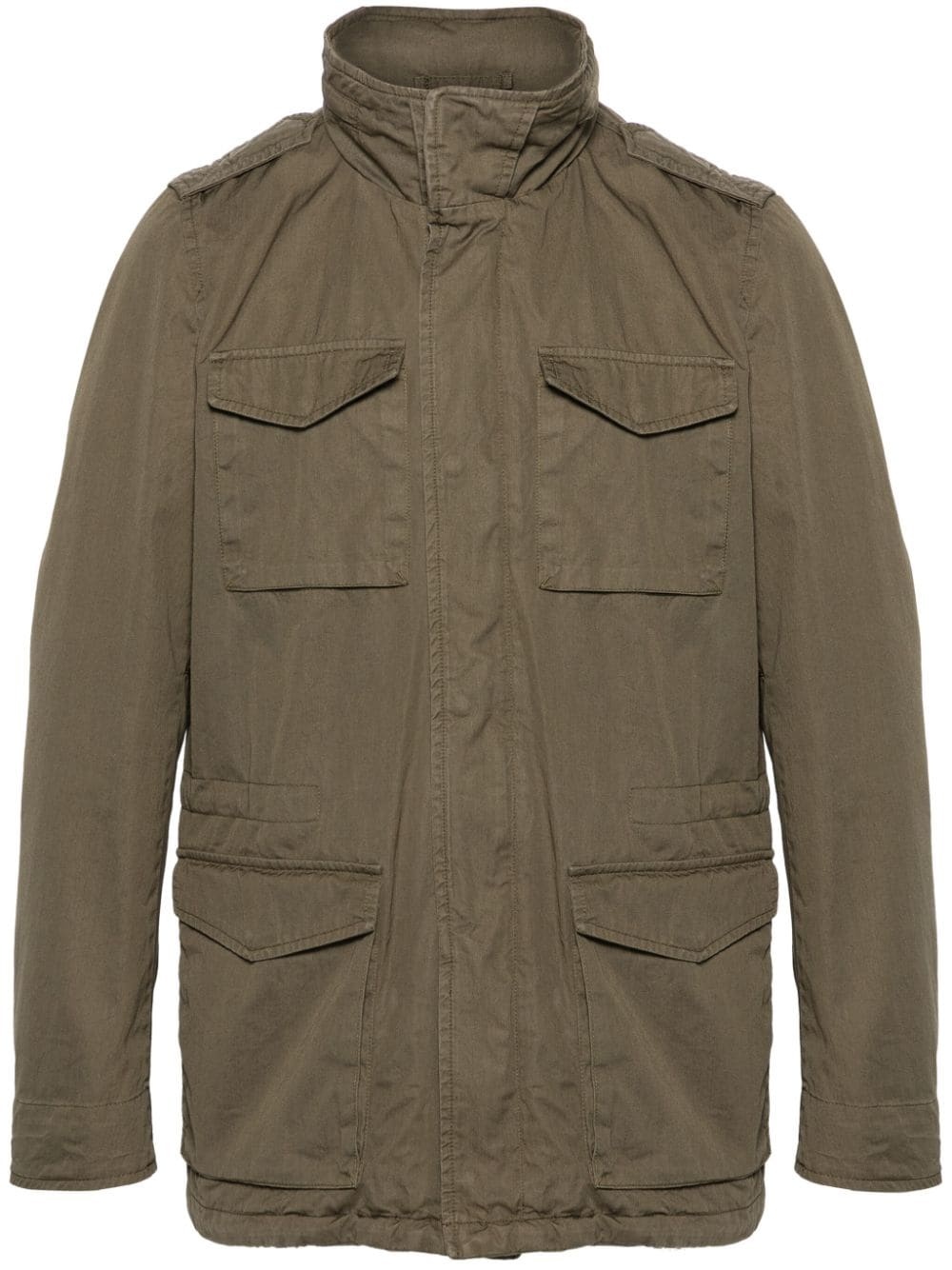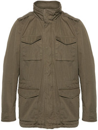 Tigri cotton military jacket Highlights - Olive green - Cotton - Gabardine weave - Water-repellent - Epaulettes - High neck - Front press-stud and zip fastening - Concealed hood - Long sleeves - Press-stud fastening cuffs - Four press-stud fastening side pockets - Internal drawstring fastening waist and hem - Full lining Imported Composition Outer: Cotton 100% Lining: Polyester 65%, Cotton 35% SIZE & FIT Model measurements Height 6 ft 2 in(1.87 m) Bust/Chest 37.79 in(96 cm) Hips 37.79 in(96 cm) Waist 30.31 in(77 cm) FittingInformation Designed for a relaxed fit, this piece allows for comfort and movement when worn The adjustable drawstring means that you can adjust this piece’s fit to suit your comfort and preference Made from a midweight non-stretch fabric This piece fits true to size – take your usual size