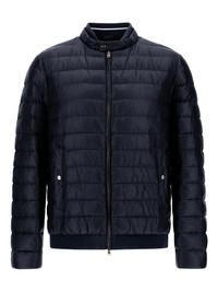 ultralight bomber jacket Highlights - Navy blue - Front zip fastening - Two press-stud fastening side pockets - Band collar - Ribbed hem Made in Italy Composition Lining: Polyamide 100%, Down 90%, Feather 10% Outer: Polyamide 100% Washing instructions Read Manufacturer Guidelines