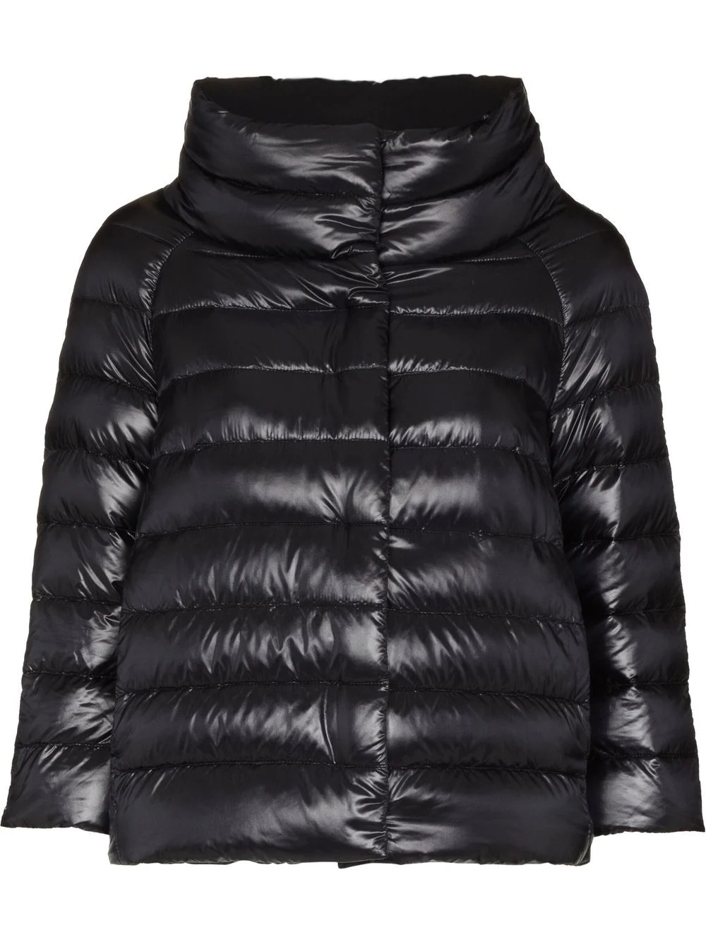 Ultralight quilted high-shine puffer jacket black cotton blend padded design high-shine finish high neck front zip fastening three-quarter length sleeves straight hem Imported Composition Outer: Polyamide 100%, Cotton 55%, Polyester 45% Lining: Polyamide 100%, Goose Down 100% SIZE & FIT Model measurements Height 5 ft 11 in(1.81 m) Bust/Chest 31.49 in(80 cm) Hips 35.82 in(91 cm) Waist 22.83 in(58 cm) FittingInformation This piece fits true to size. We recommend you get your regular size Cut for a slim fit Made with a mid-weight non-stretch fabric