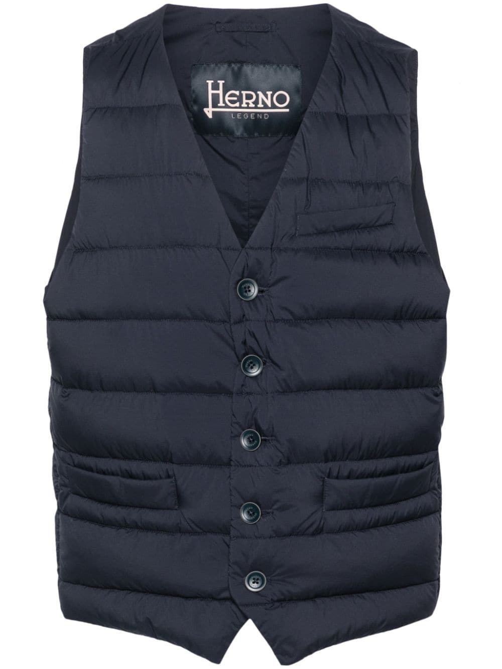 V-neck down gilet Highlights - Prussian blue - Down-feather filling - Quilted - Lightweight construction - Insulated design - V-neck - Front button fastening - Sleeveless - Chest welt pocket - Two front patch pockets - Internal zip-fastening pockets - High-low hem - Full lining Imported Composition Outer: Polyamide 100%, Polyurethane 100% Lining: Polyamide 100%, Polyester 100%, Down 90%, Feather 10% SIZE & FIT Model measurements Height 6 ft 2 in(1.88 m) Bust/Chest 36.61 in(93 cm) Hips 35.82 in(91 cm) Waist 27.95 in(71 cm) FittingInformation Designed for a slim fit, offering a comfortable fit that sits just away from the body The adjustable tabs allow for fitted preferences Made from a padded non-stretch fabric, giving it no natural elasticity This piece fits true to size – take your usual size