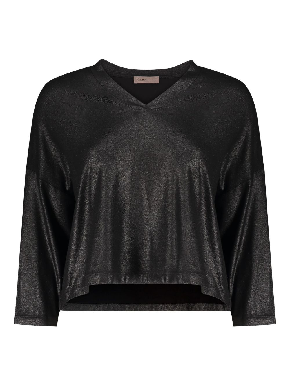 V-neck metallic top Highlights - Black - Metallic finish - V-neck - Draped shoulders Made in Italy Composition Viscose 92%, Elastane 8% Washing instructions Dry Clean Only