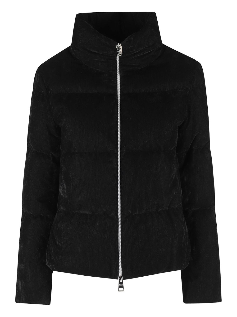 velvet quilted jacket Highlights - Black - Quilted design - Velvet - High neck - Zip fastening - Cropped length Imported Composition Viscose 76%, Polyester 16%, Metallised Fibres 8% Washing instructions Read Manufacturer Guidelines