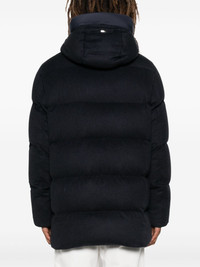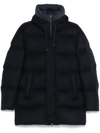 water-repellent coat Highlights - Navy blue - Silk blend - Goose down - Padded design - Quilted - Water-repellent - Waterproof - Matte finish - Front press-stud and zip fastening - Drawstring hood - Stand-up collar - Long sleeves - Elasticated cuffs - Two front welt pockets - Internal slip pocket - Full lining - Drawstring hem Made in Italy Composition Lining: Polyamide 100%, Cupro 100%, Polyurethane 100%, Polyester 100%, Goose Down 90%, Goose Feather 10% Outer: Polyamide 100%, Polyurethane 100%, Polyester 61%, Silk 51%, Cashmere 49%, Cotton 39% SIZE & FIT Model measurements Height 6 ft 2 in(1.88 m) Bust/Chest 35.43 in(90 cm) Hips 36.61 in(93 cm) Waist 27.95 in(71 cm) FittingInformation Designed for a regular fit, allowing for a comfortably loose fit throughout the body The internal drawstring at the hem allows for fitted preferences Made from a padded non-stretch fabric, giving it no natural elasticity