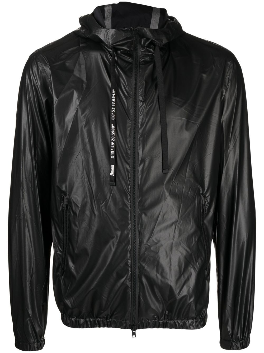 zip-fastening hooded jacket black drawstring hood front zip fastening long sleeves two side welt pockets Imported Composition Polyamide 100% SIZE & FIT Model measurements Height 6 ft 2 in(1.87 m) Bust/Chest 36.22 in(92 cm) Hips 37.79 in(96 cm) Waist 28.34 in(72 cm) FittingInformation This piece fits true to size. We recommend you get your regular size Cut for a loose fit Made with a mid-weight non-stretch fabric Washing instructions Hand Wash