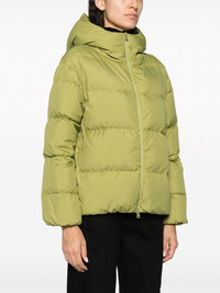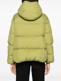 zip-up hooded down jacket Highlights - Apple green - Feather down - Padded design - Classic hood - Front two-way zip fastening - Long sleeves - Two side inset pockets - Straight hem Imported Composition Lining: Feather Down 100%, Polyester 100% Outer: Polyester 100% SIZE & FIT Model measurements Height 5 ft 10 in(1.79 m) Bust/Chest 33.07 in(84 cm) Hips 35.82 in(91 cm) Waist 24.01 in(61 cm) FittingInformation Designed to be unstructured, offering a loose fit throughout Made from a padded non-stretch fabric, giving it no natural elasticity This piece fits true to size – take your usual size Washing instructions Dry Clean Only