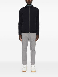 zip-up hooded jacket Highlights - Midnight blue - Drawstring hood - Mock neck - Front two-way zip fastening - Long sleeves - Two side zip-fastening pockets - Straight hem - Quilted lining Made in Italy Composition Outer: Polyurethane 100%, Polyamide 86%, Spandex/Elastane 14% Lining: Polyamide 100%, Polyester 100% SIZE & FIT Model measurements Height 6 ft 2 in(1.87 m) Bust/Chest 36.41 in(92.5 cm) Hips 37 in(94 cm) Waist 29.52 in(75 cm) FittingInformation Designed for a regular fit, allowing for a comfortably loose fit throughout the body The elasticated hem allows for movement and a comfortable fit Made from a padded non-stretch fabric, giving it no natural elasticity This piece fits true to size – take your usual size