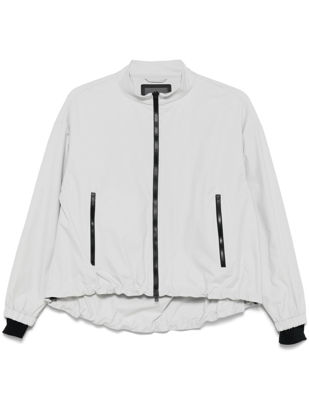 zip-up jacket Highlights - Light grey - Front two-way zip fastening - Two side zip-fastening pockets - Elasticated cuffs - Drawstring hem Imported Composition Polyester 100%, Polyamide 75%, Elastane 25% SIZE & FIT Model measurements Height 5 ft 10 in(1.78 m) Bust/Chest 33.46 in(85 cm) Hips 36.22 in(92 cm) Waist 23.22 in(59 cm) FittingInformation Designed for a relaxed fit, this piece allows for comfort and movement when worn The internal drawstring at the hem allows for fitted preferences Made from a midweight non-stretch fabric, this piece offers minimal elasticity when worn Washing instructions Hand Wash