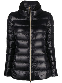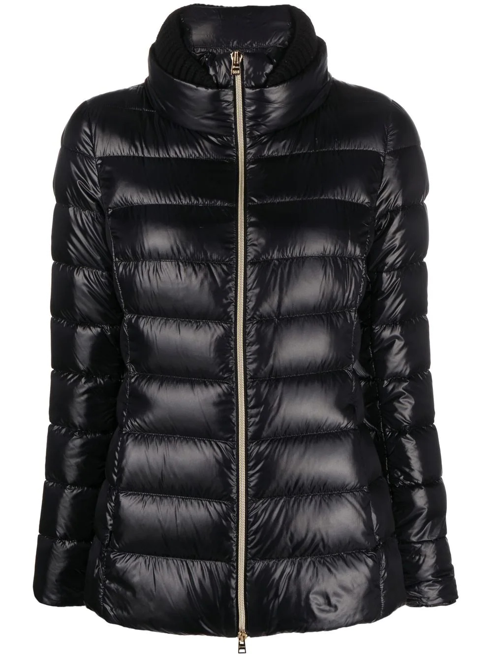 zip-up padded short jacket zip-up padded short jacket from HERNO featuring black, wool, feather down, high neck, front two-way zip fastening, gold-tone hardware, long sleeves and curved hem. Imported Composition Lining: Feather Down 100%, Polyamide 100% Outer: Polyamide 100%, Wool 100% SIZE & FIT Model measurements Height 5 ft 10 in(1.78 m) Bust/Chest 32.28 in(82 cm) Hips 35.03 in(89 cm) Waist 23.22 in(59 cm) Washing instructions Hand Wash