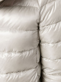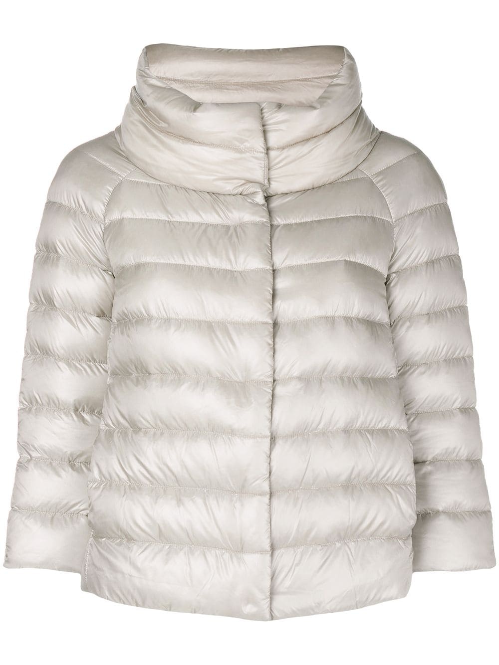 zip-up padded puffer jacket Highlights - Grey - Front zip fastening - Three-quarter length sleeves Imported Composition Lining: Feather Down 100%, Polyamide 100%, Cotton 60%, Acetate 40% Outer: Polyamide 100% SIZE & FIT Model measurements Height 5 ft 9 in(1.74 m) Bust/Chest 32.28 in(82 cm) Hips 35.82 in(91 cm) Waist 24.01 in(61 cm) Measurement LENGTH 19.29 in(49 cm) WAIST 39.76 in(101 cm) BUST 76.77 in(195 cm) Washing instructions Hand Wash