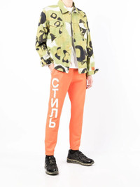 СТИЛЬ-logo cotton track pants Translating from Russian to 'style', Heron Preston's signature СТИЛЬ motif pops against the bright orange cotton fabrication of these track pants. Imported Composition Body: Cotton 100% SIZE & FIT Model measurements Height 6 ft 2 in(1.87 m) Bust/Chest 34.25 in(87 cm) Hips 36.22 in(92 cm) Waist 29.52 in(75 cm) FittingInformation This piece fits true to size. We recommend you get your regular size Designed to be loose over the leg with a fitted waist and hem Made with a mid-weight fabric Washing instructions Machine Wash