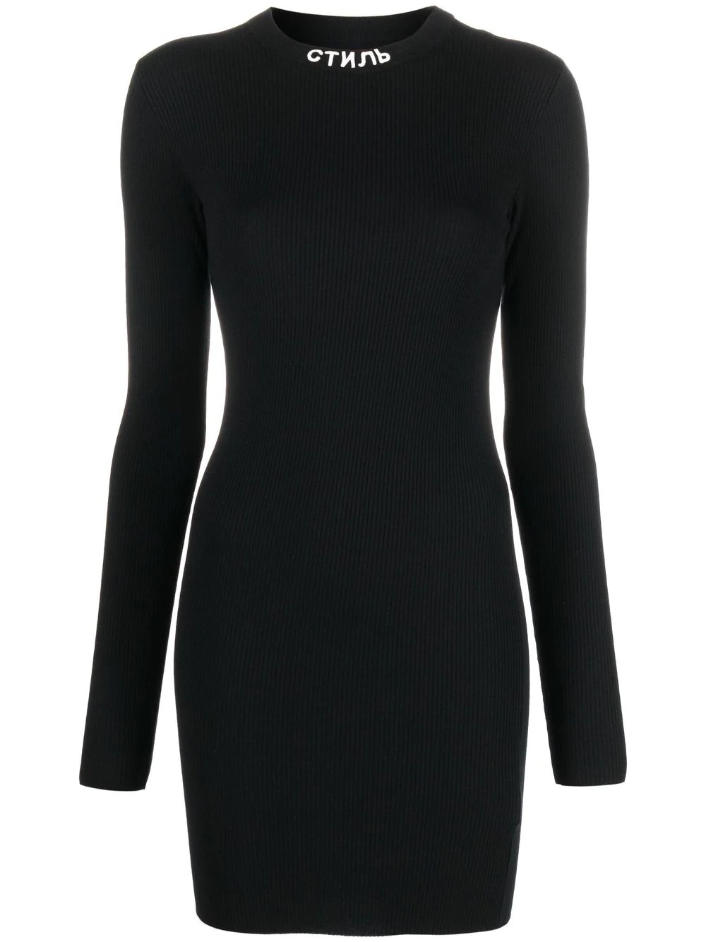 СТИЛЬ-logo dress Heron Preston's 'стиль' logo - which means 'style' in Russian - is an iconic symbol of the brand. The signature appears on the collar of this black dress, while the usual orange logo appears on the back. Made in Italy Composition Viscose 72%, Polyester 28% SIZE & FIT Model measurements Height 5 ft 10 in(1.78 m) Bust/Chest 31.49 in(80 cm) Hips 35.43 in(90 cm) Waist 24.4 in(62 cm) Washing instructions Hand Wash