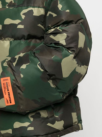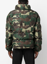 camouflage-print padded jacket military green camouflage print padded design logo patch at the sleeve high neck front zip fastening Imported Composition Outer: Polyester 100% Lining: Polyester 100%