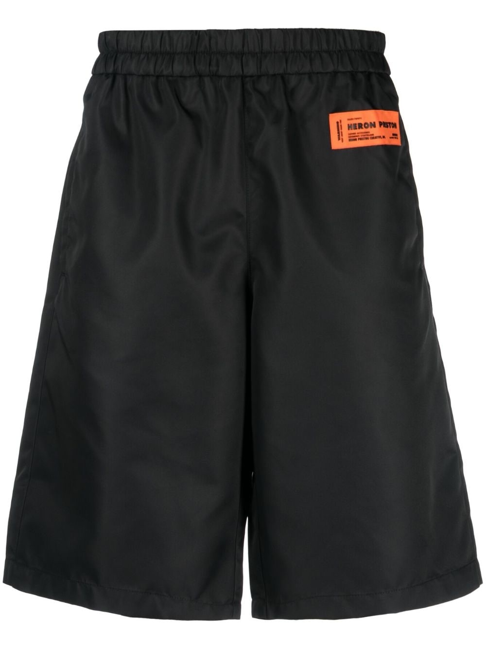 Ex-Ray logo-patch shorts Two side patch pockets and an elasticated waistband create a laid-back feel for the Ex-Ray shorts from Heron Preston. The pair are enhanced by branded details, such as the signature orange logo patch on the front. Highlights - Black - Logo patch to the front - Elasticated waistband - Two side slit pockets - Rear patch pocket - Above-knee length - Straight hem Made in Italy Composition Outer: Polyamide 100% Lining: Polyester 100% SIZE & FIT Model measurements Height 6 ft 1 in(1.85 m) Bust/Chest 35.82 in(91 cm) Hips 37.79 in(96 cm) Waist 29.13 in(74 cm) FittingInformation Designed for a regular fit, offering an even fit over the leg Made from a lightweight non-stretch fabric This piece fits true to size – take your usual size