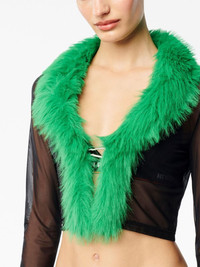 faux-fur mesh cardigan Highlights - Black - Faux-fur trim - Semi-sheer construction - V-neck - Long sleeves - Cropped Made in Italy Composition Polyester 100%, Nylon 93%, Elastane 7% SIZE & FIT FittingInformation Designed for a slim fit that sits just away from the body offering a close yet comfortable fit This piece fits true to size – take your usual size