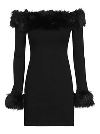 fur-trimmed strapless mini dress Highlights - Black - Off-the-shoulder neckline - Long sleeves - Fur-trimmed cuffs Made in Italy Composition Cotton 85%, flyknit 85%, Lycra 15%, Polyester 15% Washing instructions Read Manufacturer Guidelines