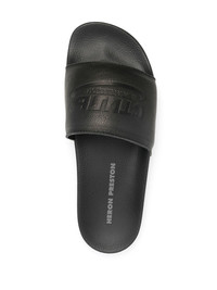 logo debossed slides Suns out, toes out. These Heron Preston logo-debossed slides are great for days when the sun is shining brightly and socks are out of the question. Slip them on and stride off to the park. Made in Italy Composition Outer: Leather 100% Lining: Cotton 100% Sole: Rubber 100% SIZE & FIT FittingInformation This piece fits small – take one size up