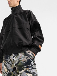 logo-patch bomber jacket Heron Preston updates the classic bomber jacket with a streetwear aesthetic. This black lightweight style is made from shell finished with tonal logo-tape detailing and recognisable orange logo patch at the cuff. Highlights - Black - Cotton - Logo-tape detailing - Logo patch at the sleeve - Funnel neck - Storm flap - Front zip fastening - Elasticated cuffs - Elasticated hem Imported Composition Cotton 100% SIZE & FIT Model measurements Height 6 ft 2 in(1.89 m) Bust/Chest 35.43 in(90 cm) Hips 36.61 in(93 cm) Waist 28.74 in(73 cm) FittingInformation This piece fits true to size. We recommend you get your regular size Cut for a loose fit Made with a mid-weight non-stretch fabric Washing instructions Dry Clean Only