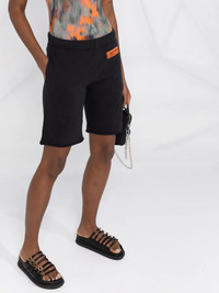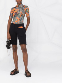 logo-patch organic-cotton knee-length shorts Highlights - Black - Organic cotton - Logo patch to the front - Elasticated waistband - Stretch-design - Knee-length Imported Composition Polyester 100%, Organic Cotton 100% SIZE & FIT Model measurements Height 5 ft 10 in(1.78 m) Bust/Chest 31.49 in(80 cm) Hips 37 in(94 cm) Waist 23.62 in(60 cm) FittingInformation This piece fits true to size. We recommend you get your regular size Cut for a slim fit Made with a mid-weight fabric Washing instructions Machine Wash