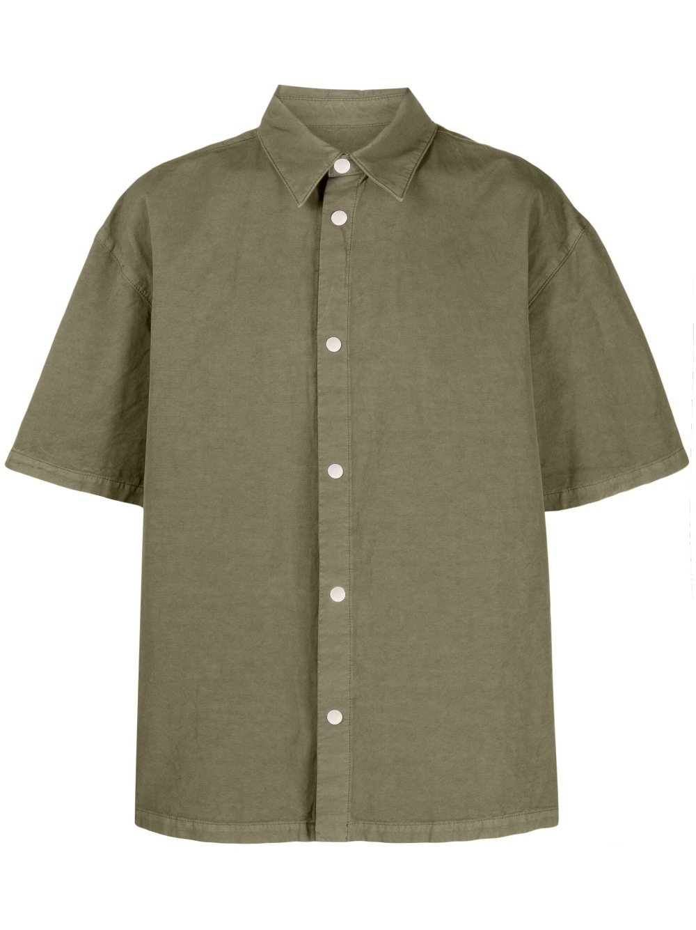 logo-patch short-sleeve shirt olive green cotton-linen blend logo patch to the rear classic collar front press-stud fastening short sleeves straight hem Made in Italy Composition Cotton 80%, Linen/Flax 20% SIZE & FIT Model measurements Height 6 ft 1 in(1.85 m) Bust/Chest 35.82 in(91 cm) Hips 37.79 in(96 cm) Waist 29.13 in(74 cm) Washing instructions Machine Wash