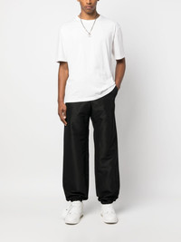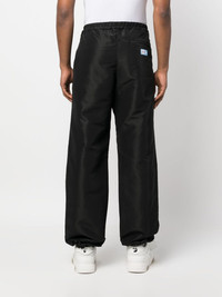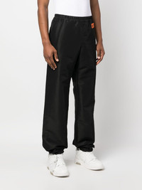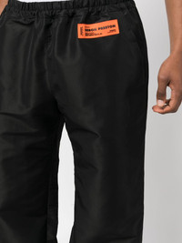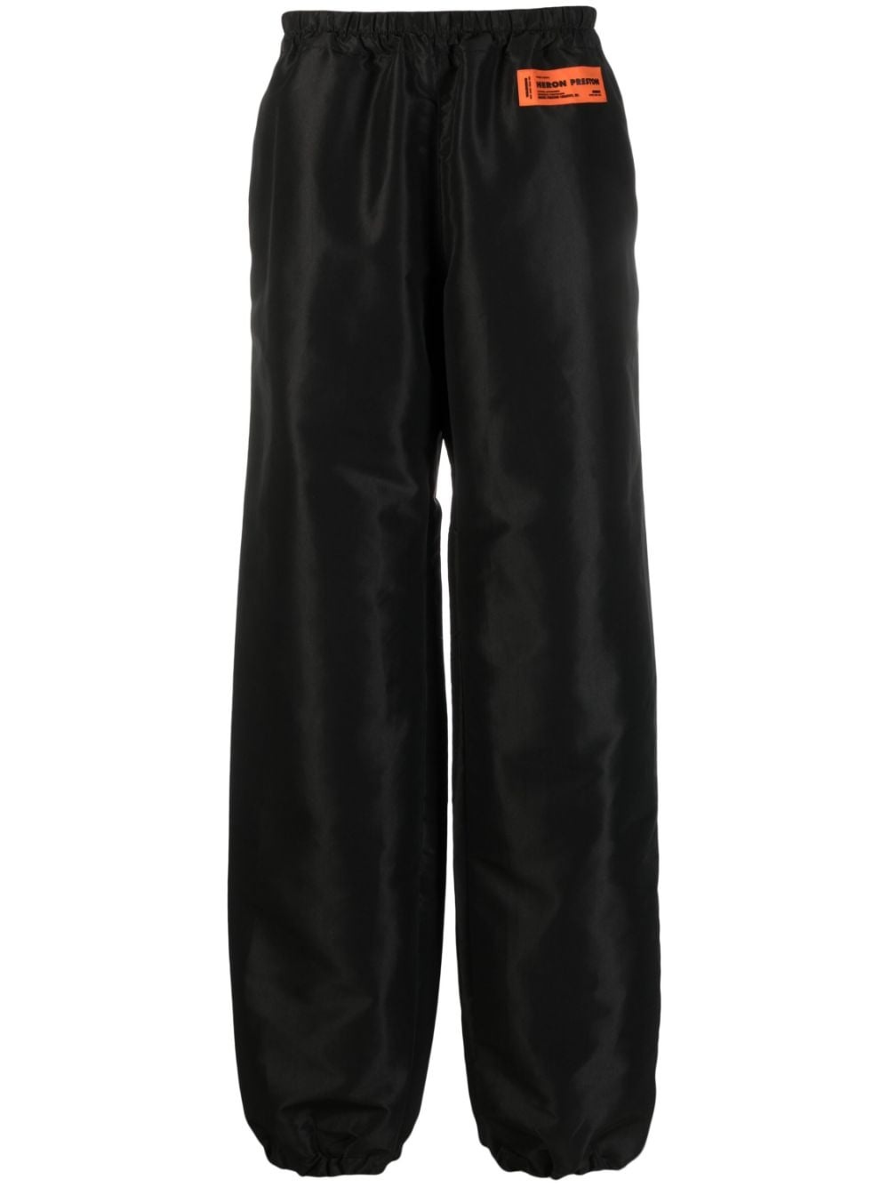 logo-patch wide-leg trousers Heron Preston introduces these satin-finish trousers for SS23. Boasting the brand's iconic orange-hued logo patch to the front, the relaxed trousers are characterised by a comfortable elasticated waist and wide-leg silhouette. Highlights - Black - Satin finish - Elasticated waist - Logo patch to the front - Wide-leg - Elasticated hem Made in Italy Composition Lining: Polyester 100% Outer: Polyester 100% SIZE & FIT Model measurements Height 6 ft 1 in(1.85 m) Bust/Chest 38.58 in(98 cm) Hips 37 in(94 cm) Waist 30.31 in(77 cm) FittingInformation Designed for a straight-leg, allowing for an unrestricted and comfortable fit over the leg The elasticated hem at the ankle allows for movement and a comfortable fit Made from a lightweight non-stretch fabric This piece fits true to size – take your usual size Washing instructions Machine Wash