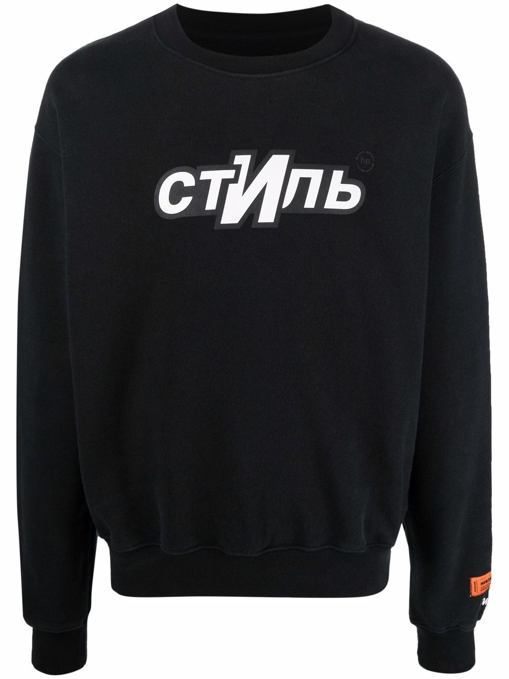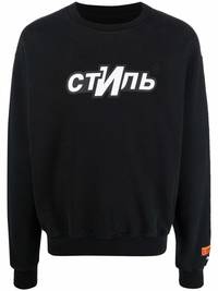 logo-print crew-neck sweatshirt Combining comfort with bold style, Heron Preston presents this crew-neck sweatshirt. Crafted from cotton, the piece is decorated with a striking logo print to the front for a recognisable look. Highlights - Black/white - Organic cotton - Logo print at the chest - Logo patch to the rear - Logo patch at the sleeve - Crew neck - Drop shoulder - Long sleeves - Ribbed cuffs - Ribbed hem Imported Composition Polyester 100%, Cotton 100% SIZE & FIT Model measurements Height 6 ft 3 in(1.9 m) Bust/Chest 38.18 in(97 cm) Hips 37.79 in(96 cm) Waist 32.67 in(83 cm) FittingInformation This piece fits true to size. We recommend you get your regular size Cut for a loose fit Made with a mid-weight fabric Washing instructions Machine Wash