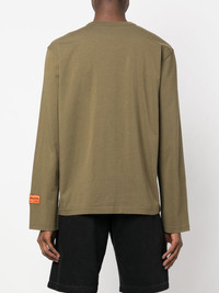 logo-print detail T-shirt olive green cotton logo print to the front round neck long sleeves straight hem Imported Composition Cotton 100% SIZE & FIT Model measurements Height 6 ft 2 in(1.88 m) Bust/Chest 36.61 in(93 cm) Hips 35.82 in(91 cm) Waist 27.95 in(71 cm) FittingInformation This piece fits true to size. We recommend you get your regular size Cut for a relaxed fit Made with a mid-weight fabric Washing instructions Machine Wash