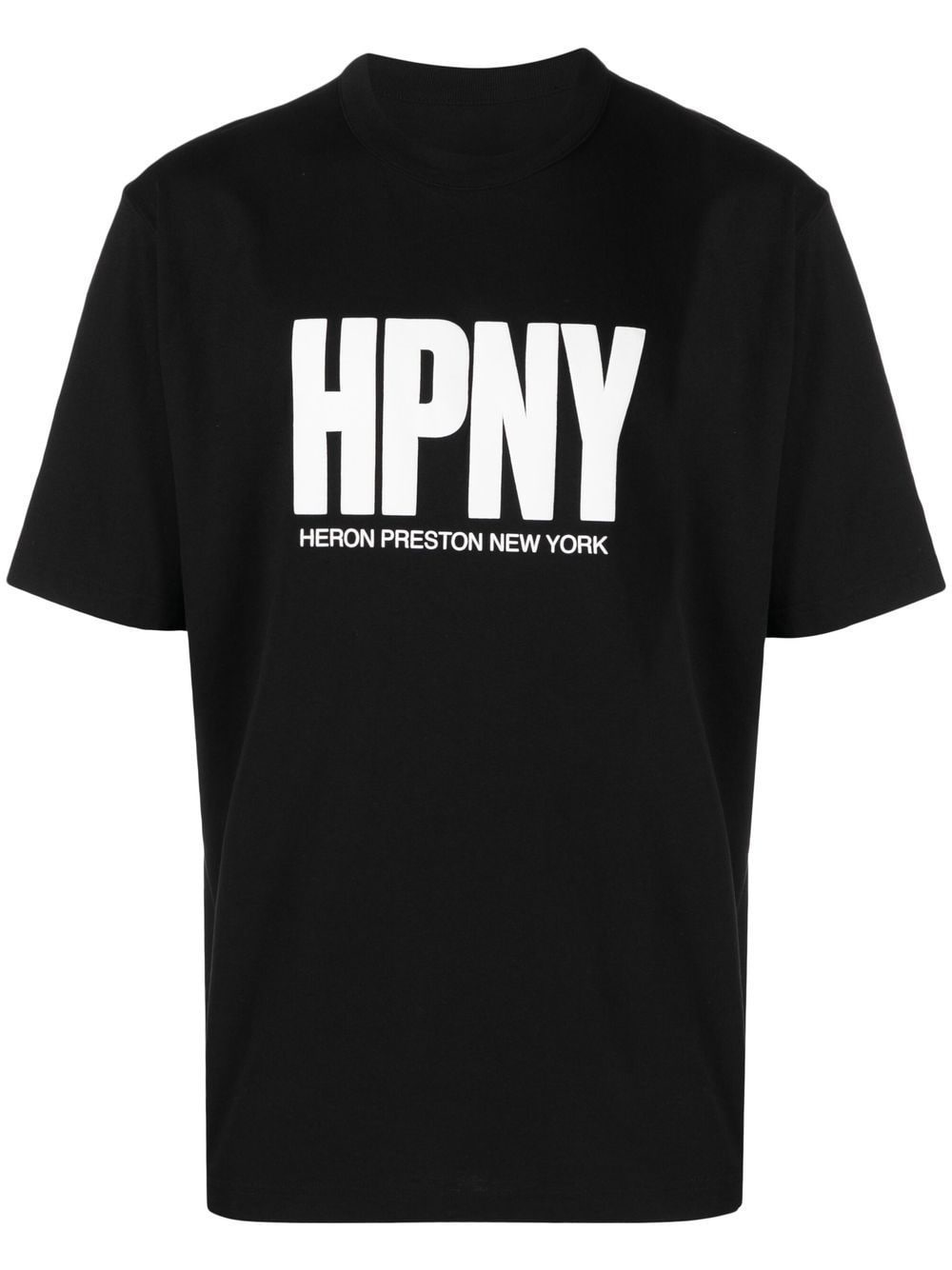 logo-print organic cotton T-shirt This Heron Preston black T-shirt stands out thanks to its contrasting logo print to the front. The design is crafted from cotton and detailed with the usual orange patch to the back. Highlights - Black/white - Organic cotton - Logo print to the front - Logo patch to the rear - Crew neck - Short sleeves Imported Composition Cotton 100% SIZE & FIT Measurement CHEST 51.18 in(130 cm) SLEEVE LENGTH 11.41 in(29 cm) LENGTH 28.74 in(73 cm) Shoulder Width 20.86 in(53 cm)