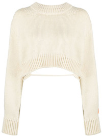 open-back cropped wool jumper Showcasing a contemporary approach to classic knitwear designs, Heron Preston presents this wool jumper. Defined by a dramatic open-back design, the look is enhanced with the ever-present orange logo patch appearing on the sleeve for a recognisable finish. Highlights - Off-white - Wool - Knitted construction - Logo patch at the sleeve - Open back - Crew neck - Long sleeves - Straight hem Made in Italy Composition Wool 100% SIZE & FIT Model measurements Height 5 ft 10 in(1.77 m) Bust/Chest 32.67 in(83 cm) Hips 35.43 in(90 cm) Waist 23.62 in(60 cm) FittingInformation Designed to be unstructured, offering a loose fit throughout Made with a midweight knit, this piece offers some stretch This piece fits true to size – take your usual size Washing instructions Hand Wash