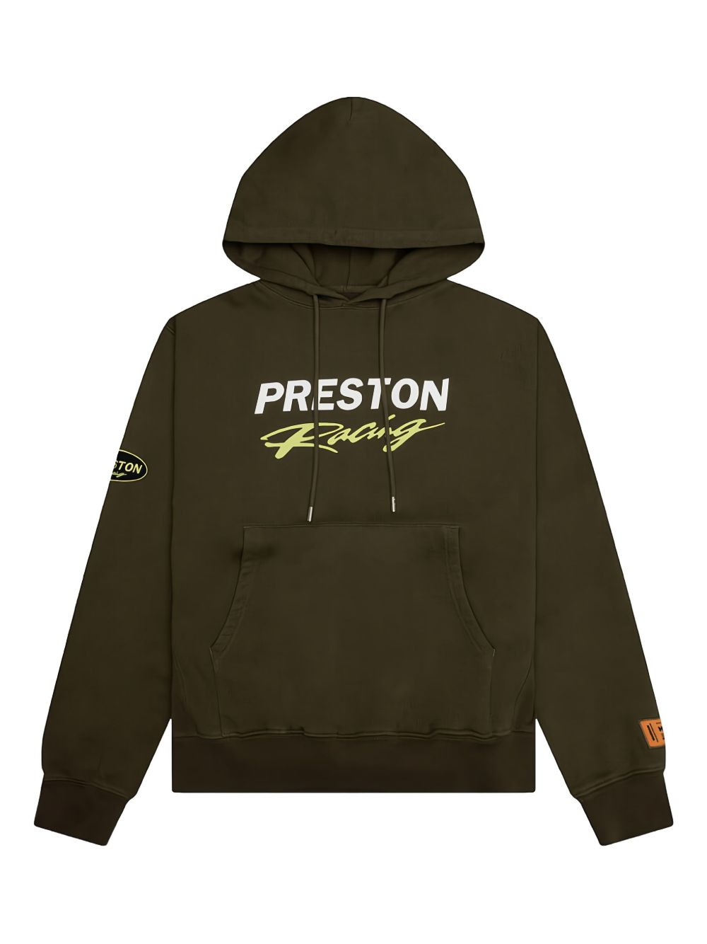 Preston Racing skull-patch hoodie Highlights - Olive green - Preston racing logo - Skull patch - Logo patch - Drawstring hood - Pouch pocket Imported Composition Cotton 100% Washing instructions Read Manufacturer Guidelines
