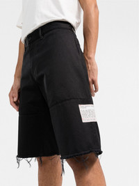 raw hem denim shorts Heron Preston's notable distressed aesthetic is present on these raw hem denim shorts. Highlights - Black - Cotton - Belt loops - Front button and zip fastening - Logo print to the side Imported Composition Outer: Cotton 100% Lining: Polyester 65%, Cotton 35% SIZE & FIT Model measurements Height 6 ft 2 in(1.89 m) Bust/Chest 37.79 in(96 cm) Hips 37 in(94 cm) Waist 29.92 in(76 cm) FittingInformation This piece fits true to size. We recommend you get your regular size Designed for a slim fit at the waist and loose over the leg Made with a mid-weight fabric