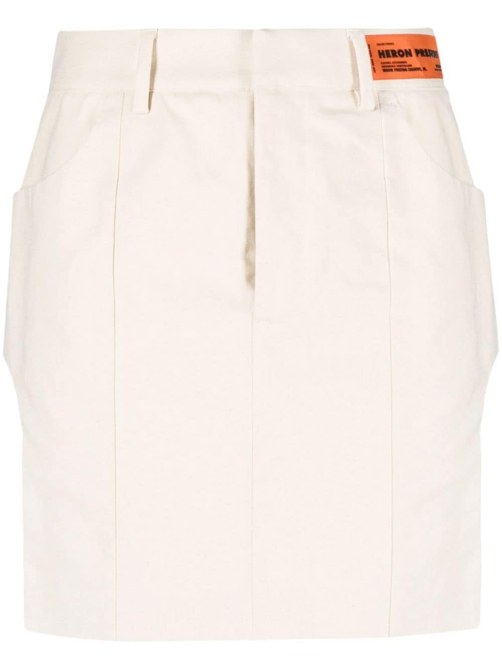side-slits fitted mini skirt cream white cotton logo patch to the front belt loops side slits front button fastening two side slit pockets Made in Italy Composition Outer: Cotton 100% Lining: Viscose 100% SIZE & FIT Model measurements Height 5 ft 10 in(1.79 m) Bust/Chest 31.1 in(79 cm) Hips 35.03 in(89 cm) Waist 24.01 in(61 cm) FittingInformation This piece fits true to size. We recommend you get your regular size Designed to be fitted at the waist and hips, loose over the leg Made with a mid-weight non-stretch fabric Washing instructions Dry Clean Only