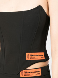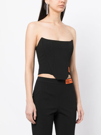 structured bodice top black off-shoulder boned bodice logo patch to the front sleeveless rear zip fastening asymmetric hem Made in Italy Composition Polyester 66%, Viscose 28%, Elastane 6% SIZE & FIT Model measurements Height 5 ft 10 in(1.78 m) Bust/Chest 33.07 in(84 cm) Hips 33.85 in(86 cm) Waist 25.19 in(64 cm) FittingInformation This piece fits true to size. We recommend you get your regular size Cut for a close fit Made with a mid-weight stretch fabric Washing instructions Dry Clean Only