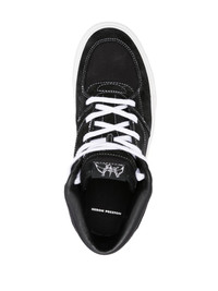 Toby mid-top sneakers Boasting a casual, mid-top silhouette, these paired-back sneakers by Heron Preston arrive in a monochrome colourway punctuated with the label's signature orange logo patch on the rear and side. Highlights - Black/white - Canvas - Mid-top design - Contrast stitching - Logo patch to the rear - Logo patch to the side - Branded insole - Logo patch at the tongue - Front lace-up fastening - Round toe - Flat rubber sole Imported Composition Sole: Rubber 100% Lining: Cotton 100% Outer: Cotton 96%, Bovine Leather (top grain) 4% SIZE & FIT Measurement HEEL 1.18 in(3 cm) HEIGHT 3.93 in(10 cm) Sole height 0.98 in(2.5 cm)