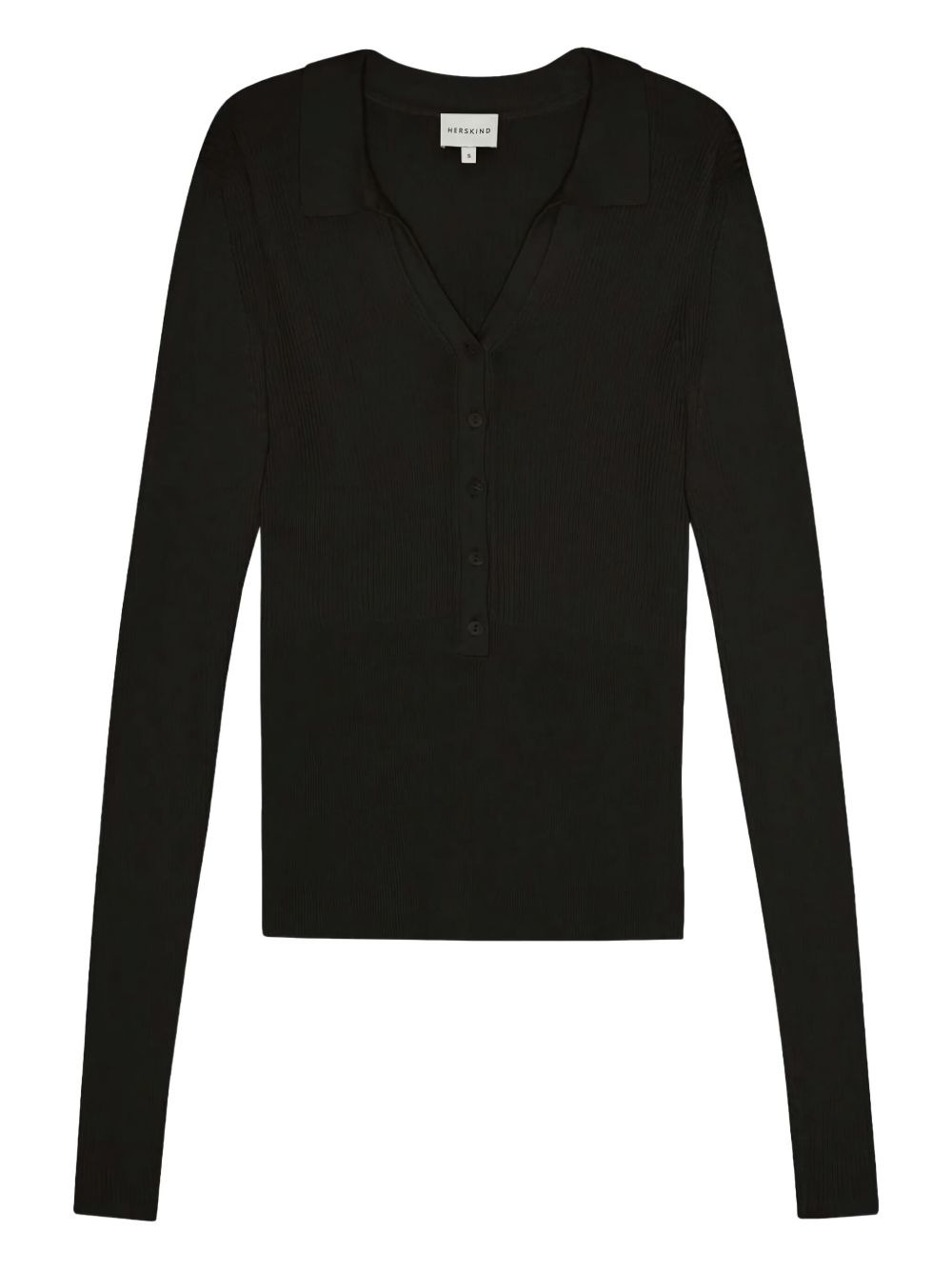 Finn ribbed polo neck blouse Highlights - Black - Ribbed knit - Polo neck - Button placket - Long sleeves Imported Composition Lyocell 69%, Cotton 25%, Silk 6% Washing instructions Read Manufacturer Guidelines