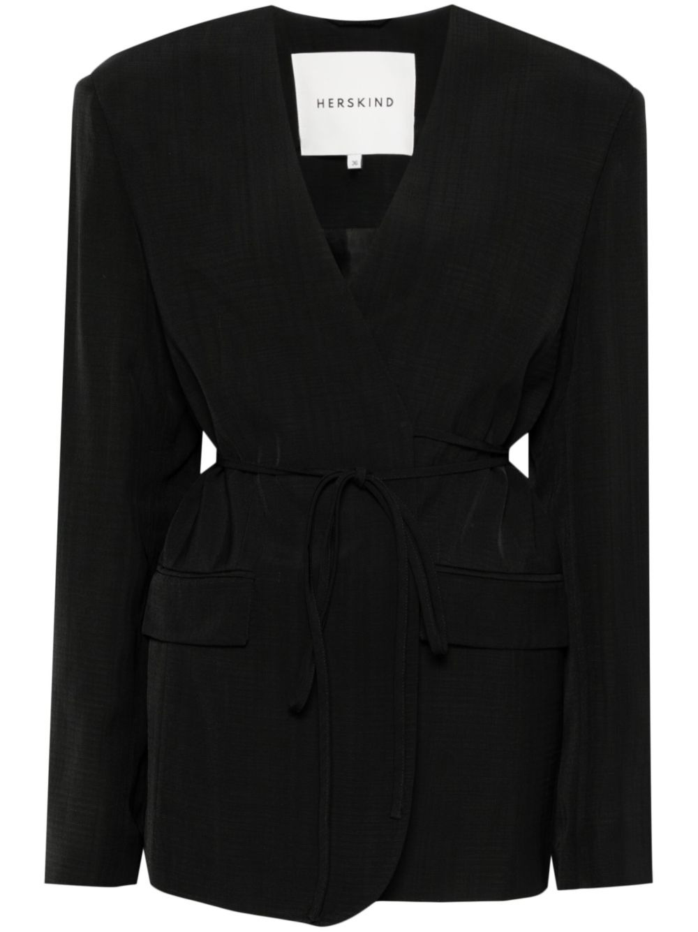 Indiana blazer Highlights - Black - Front tie fastening - Shoulder pads - Internal pocket - Two front flap pockets Imported Composition Lining: Acetate 100% Outer: Viscose 100% SIZE & FIT Model measurements Height 5 ft 9 in(1.75 m) Bust/Chest 34.64 in(88 cm) Hips 36.61 in(93 cm) Waist 26.37 in(67 cm) FittingInformation Designed to be unstructured, offering a loose fit throughout The tie fastening gives an adaptable and personalised fit Made from a midweight non-stretch fabric Washing instructions Dry Clean Only