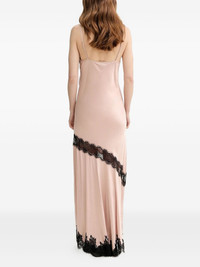 lace-insert silk slip dress Highlights - Blush pink - Silk fabric - Black lace embellishment - V-neckline - Asymmetrical hem - Side split - Lace trim Imported Composition Rayon 50%, FSC Viscose 50% Washing instructions Read Manufacturer Guidelines