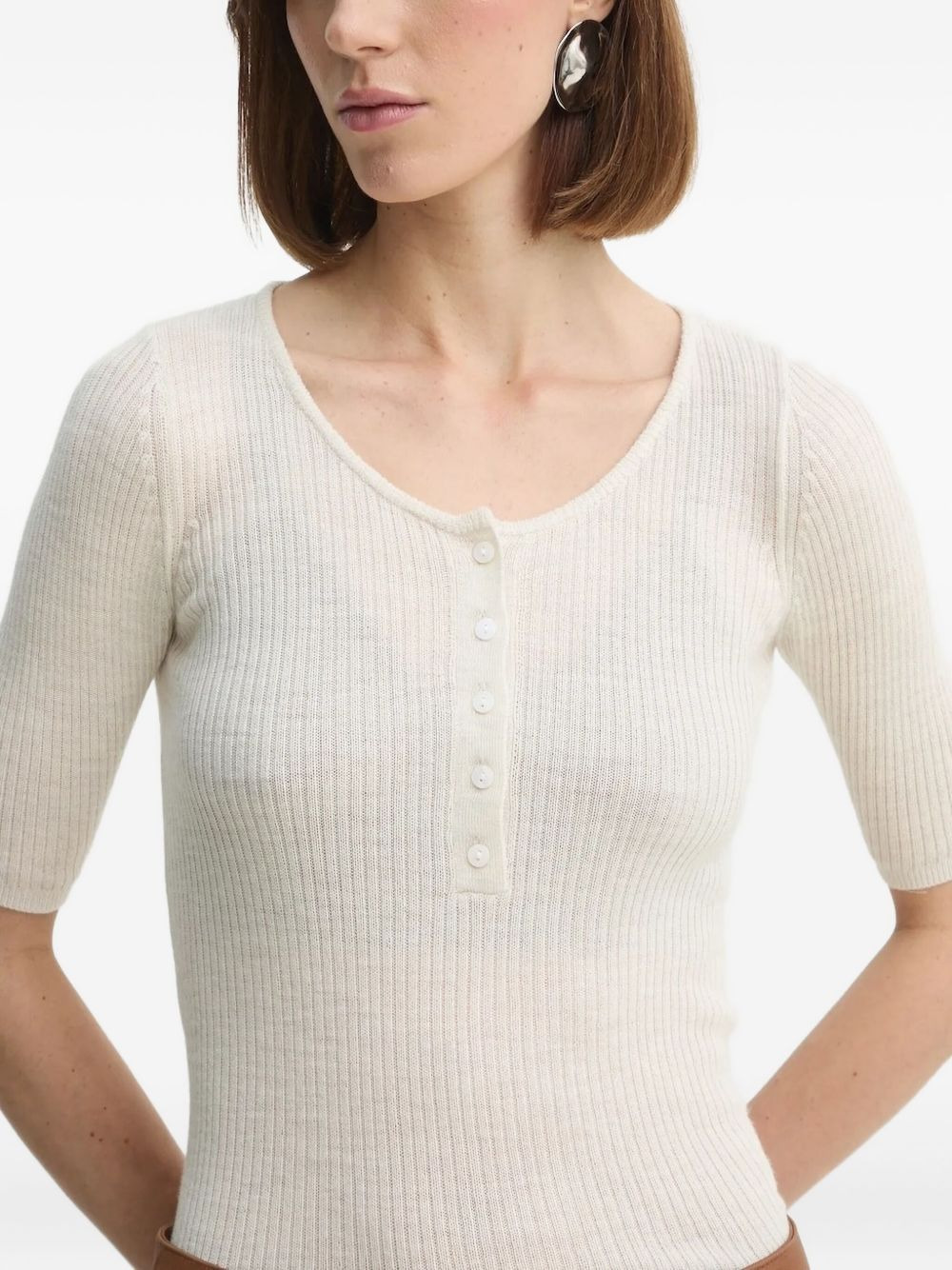 ribbed button-front top Highlights - White - Ribbed texture - Short sleeves - Round neck - Front button placket - Fitted style Imported Composition Merino 100% Washing instructions Read Manufacturer Guidelines