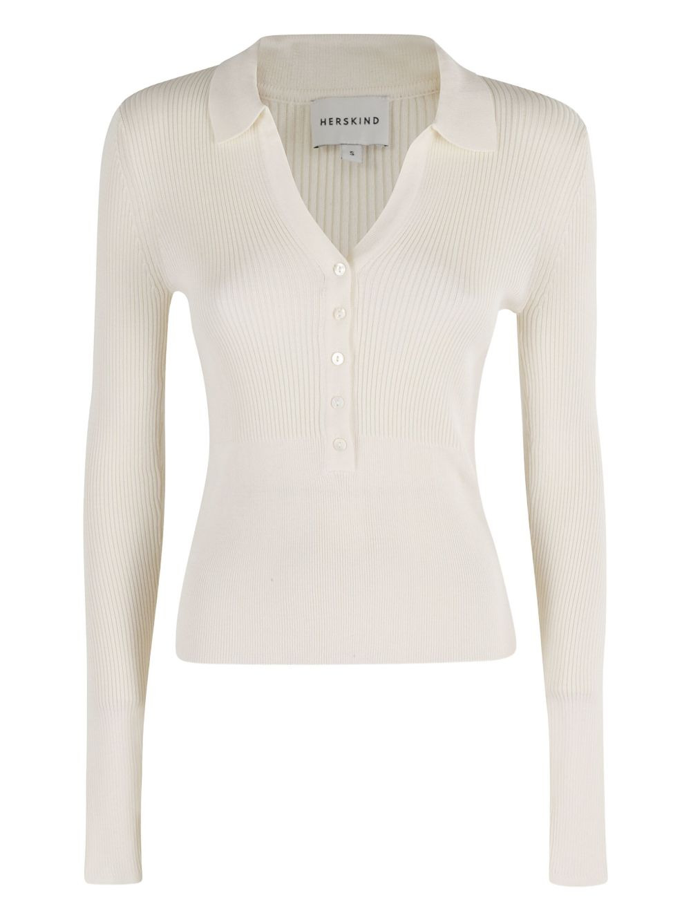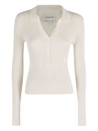 ribbed polo-neck sweater Highlights - Off-white - Ribbed texture - Polo neck - Button fastening - Long sleeves Imported Composition Fabric 100% Washing instructions Read Manufacturer Guidelines