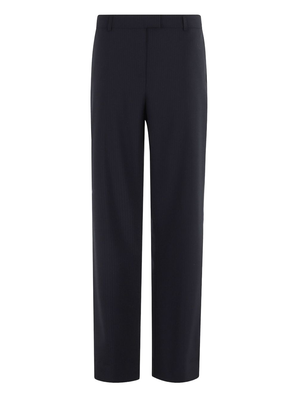 welted-pocket trousers Highlights - Navy blue - Pinstripe pattern - Button fastening - Welt pockets Imported Composition Polyester 53%, Virgin Wool 43%, Elastane 4% Washing instructions Read Manufacturer Guidelines