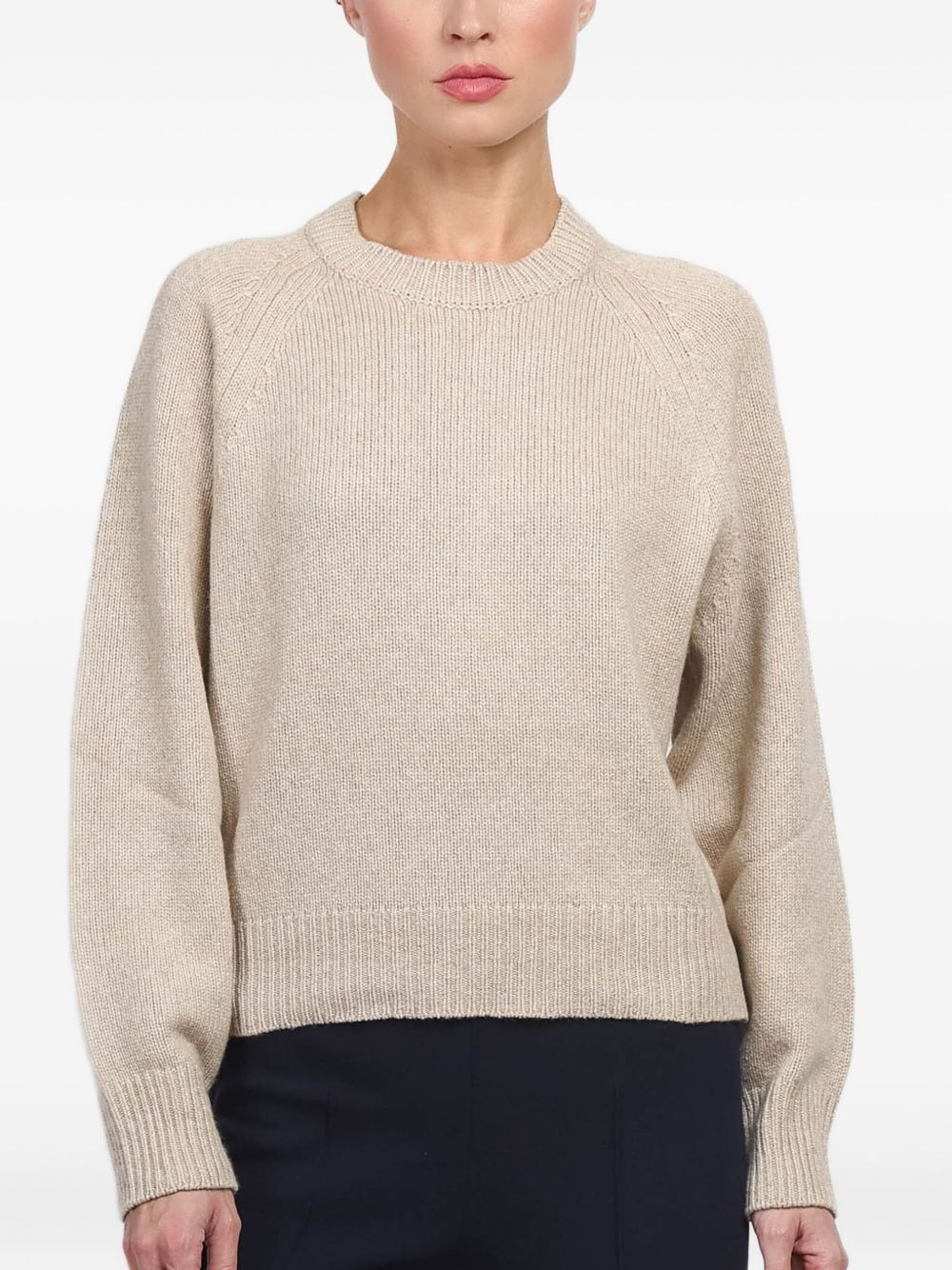 ribbed-trim sweater Highlights - Light beige - Knitted construction - Raglan sleeves - Ribbed trim - Round neck Made in Italy Composition Wool 70%, Silk 20%, Cashmere 10% Washing instructions Read Manufacturer Guidelines
