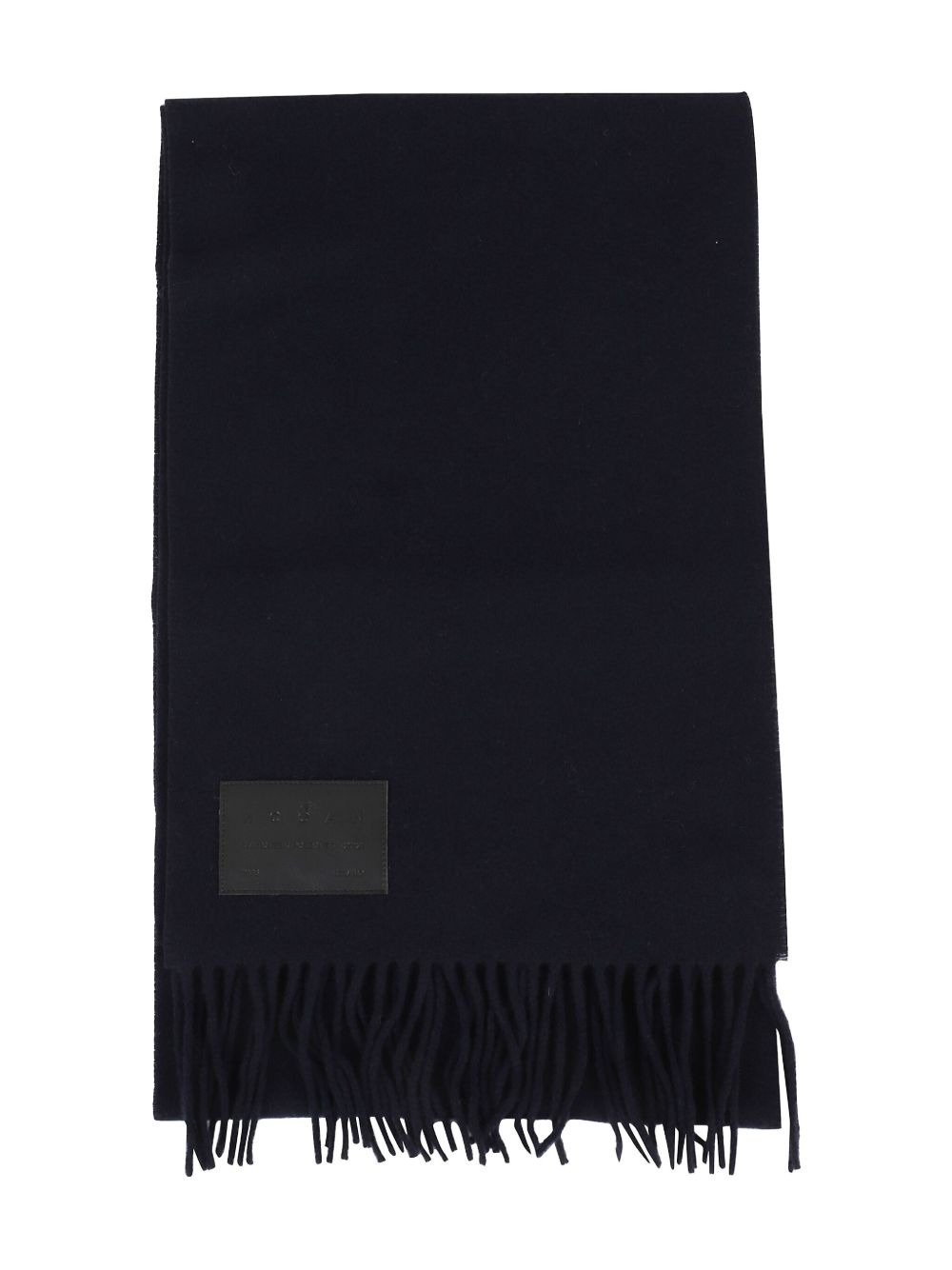 fringed logo-patch scarf Highlights - Navy blue - Logo patch - Fringed edges - Rectangular shape Imported Composition Virgin Wool 90%, Cashmere 10%