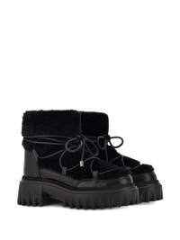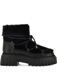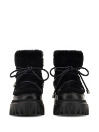 fur-trimmed boots Highlights - Black - Front lace-up fastening - Chunky rubber lug sole - Debossed logo to the side Made in Italy Composition Outer: Sheep Skin/Shearling 70%, CALFSKIN 30% Lining: Fabric 100% Sole: Rubber 100%