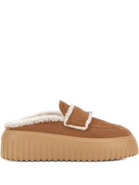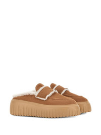H-Striped platform mules Highlights - Brown - Shearling lining - Decorative strap - Chunky platform sole - Ridged outsole Made in Italy Composition Outer: Calf Suede 90%, Sheep Suede 10% Sole: Rubber 100% Lining: Fabric 100%
