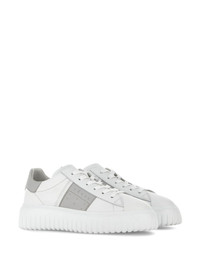 H-Stripes leather sneakers Highlights - White/multicolour - Calf leather - Panelled design - Front lace-up fastening - Logo patch to the side - Round toe - Chunky rubber sole Made in Italy Composition Sole: Rubber 100% Lining: Calf Leather 100%, Fabric 100% Outer: Calf Leather 100% SIZE & FIT FittingInformation This piece fits large – take one size down Measurement HEEL 1.88 in(4.8 cm)