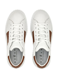 H-Stripes leather sneakers Highlights - White/brown - Calfskin - Panelled design - Logo patch to the side - Round toe - Front lace-up fastening - Branded memory foam insole - Ribbed chunky rubber sole Made in Italy Composition Lining: CALFSKIN 100% Sole: Rubber 100% Outer: CALFSKIN 100% SIZE & FIT Measurement HEEL 1.57 in(4 cm) Sole height 1.37 in(3.5 cm)