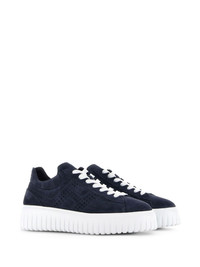 H-Stripes suede sneakers Highlights - Navy blue - Leather - Suede - Signature h logo - Perforated detailing - Tonal stitching - Round toe - Front lace-up fastening - Branded insole - Chunky rubber sole Made in Italy Composition Lining: Fabric 100%, Leather 100% Sole: Rubber 100% Outer: Suede 100%